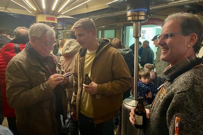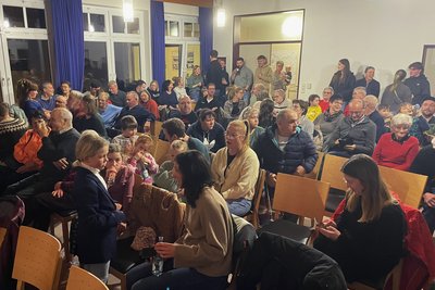 Der Nikolaus durfte selbstverständlich auch nicht fehlen,der die Kinder mit Tüten voller Leckereien überraschte. Zwischenzeitlich drang auch der Duft von Glühwein und Bratwürsten, sowie Grumbeereworscht durch die Luft. Mit viel Fleiß und Eifer wurden die Gäste versorgt. Es gab viele gute Gelegenheiten für eine Schwätzchen und neue Gesichter kennen zu lernen. Statt centgenau zu bezahlen stand ein Spendenschwein bereit. Der Erlös des Abends wird wieder einem karitativen Zweck zugeführt. Vielen Dank an alle Spender.