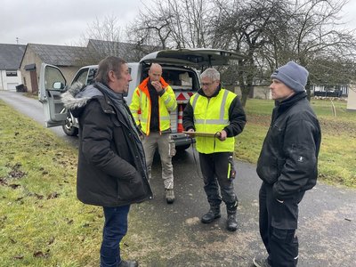 Mit der Vermessung von Flächen für das geplante Neubaugebiet in der Bergstraße sind wir nun wieder ein Stück weiter. Die Wiesen im Privateigentum auf der oberen rechten Seite wurden heute vermessen. Ausgestattet mit GPS gesteuerten Vermessungsgeräten konnten die Flächen zügig erfasst werden. Pinne im Boden zeigen nun die neuen Eckpunkte des Gebietes. Nun kann die Gemeinde den Grundstückskauf in Angriff nehmen. Dies wäre dann die Voraussetzung für die weitere Erschließung.