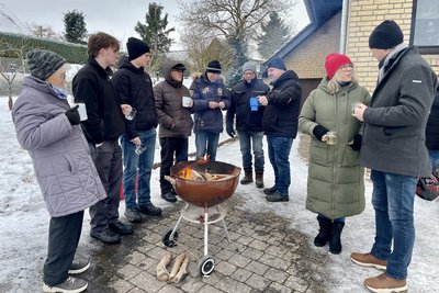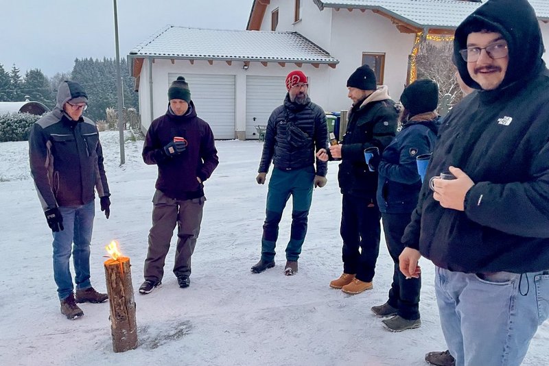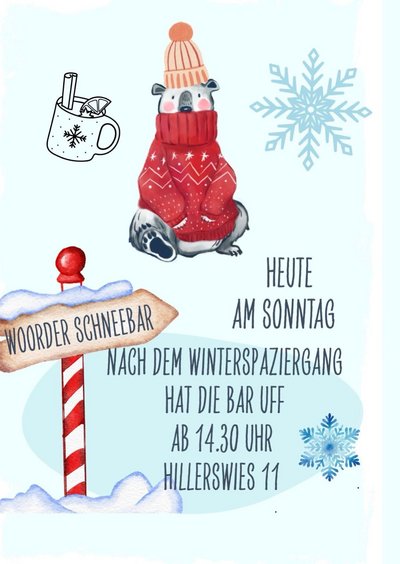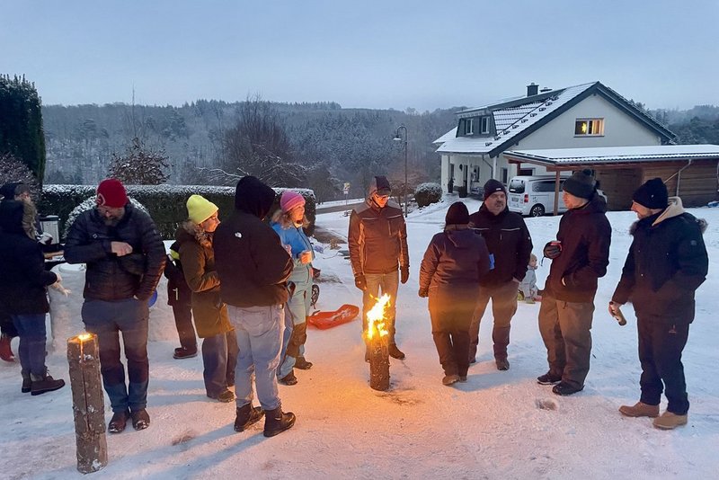 Am folgenden Nachmittag ab ½ drei kamen die ersten Gäste und viele genauso wie erwünscht, erst einen Wintersparziergang machen und dann ab zur Schneebar. Auch Freunde aus Bell gesellten sich dazu. Ein reger Gedankenaustausch und launige Gespräche entfachten sich wieder und wieder um ein wärmendes Feuer. Ein schöner Start ins Neue Jahr. Nach langen Stunden löste sich nach und nach die Runde auf, um sich in den eigenen vier Räumen doch wieder etwas mehr aufzuwärmen. Die spontane Glühweinparty wird wohl noch einige Zeit in Erinnerung bleiben.