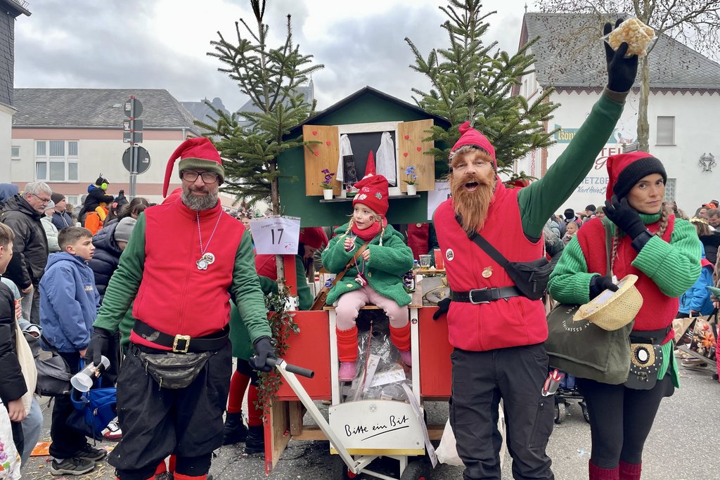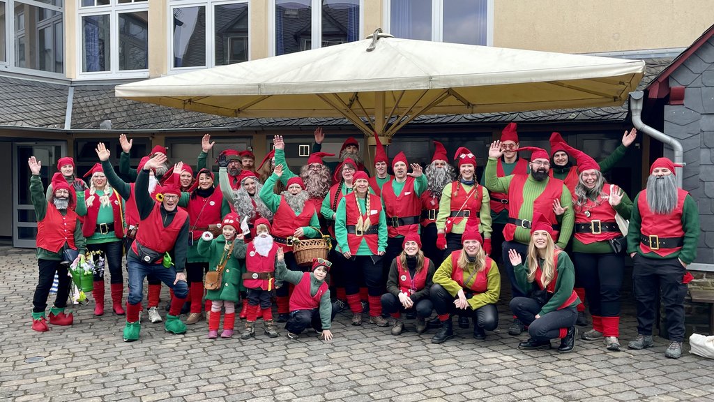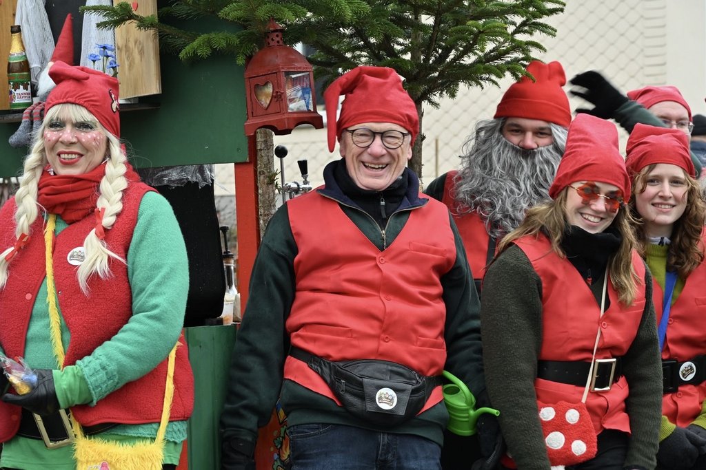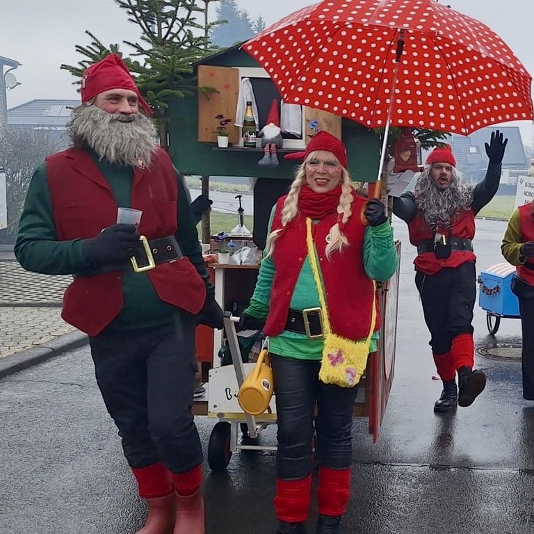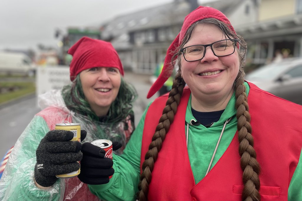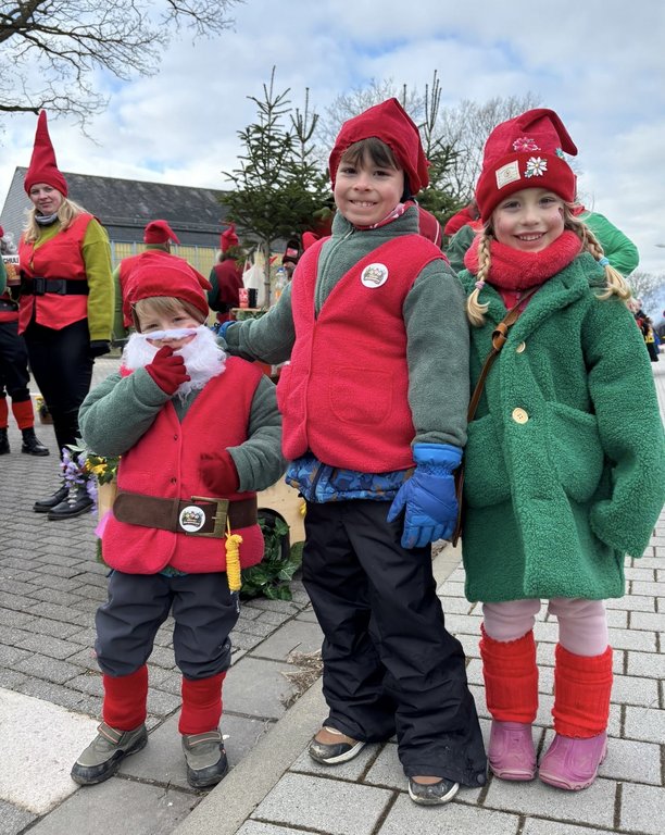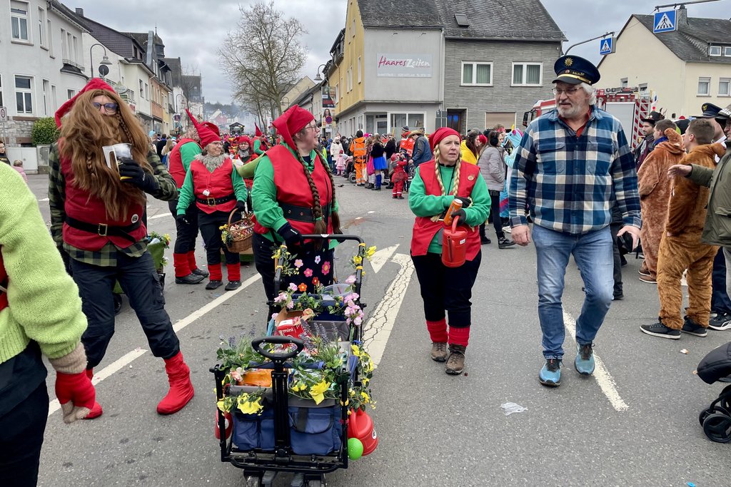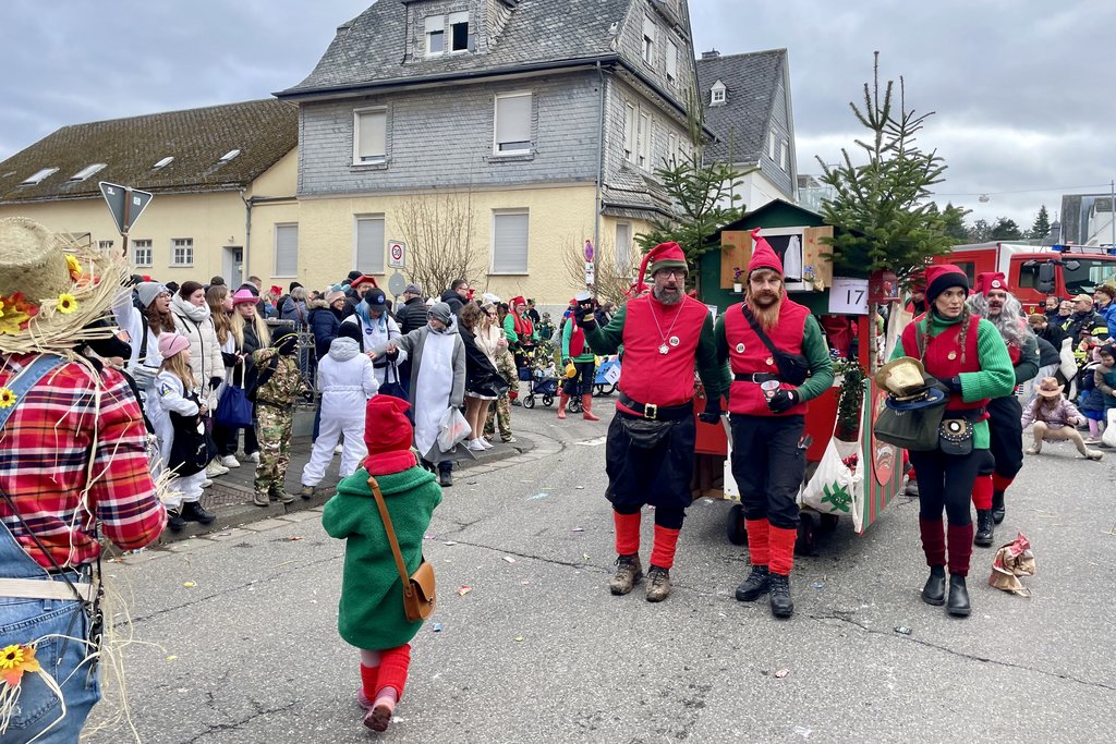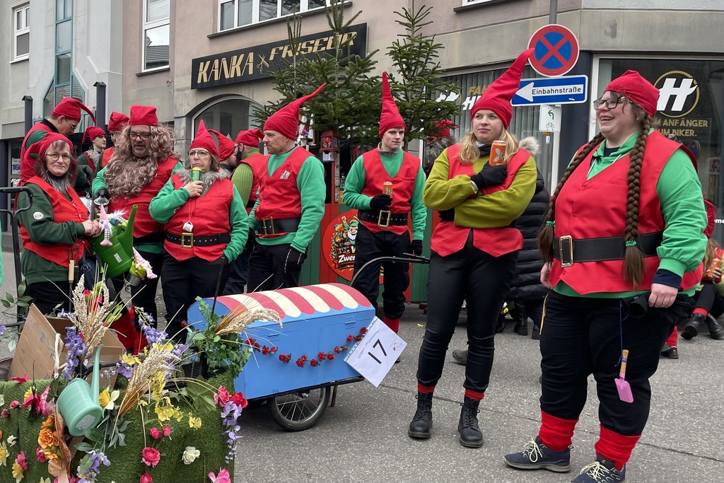 Der Woorder Zwergenaufstand zeigte sich aber von seiner freundlichen Seite. Aufstand ja, aber nett, freundlich und immer mit einem Helau auf den Lippen. Mehr als dreißig rote Zipfelmützen machten sich auf den Weg um die Narrenschar zu begrüßen. Mit reichlich Wurfmaterial und Flüssignahrung konnten die Zuschauer rechts und links der närrischen Wege beglückt werden.