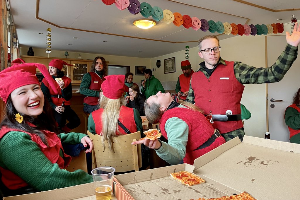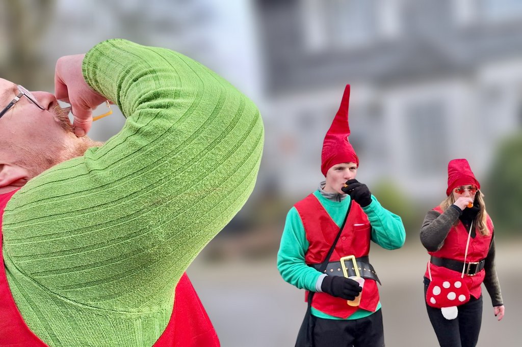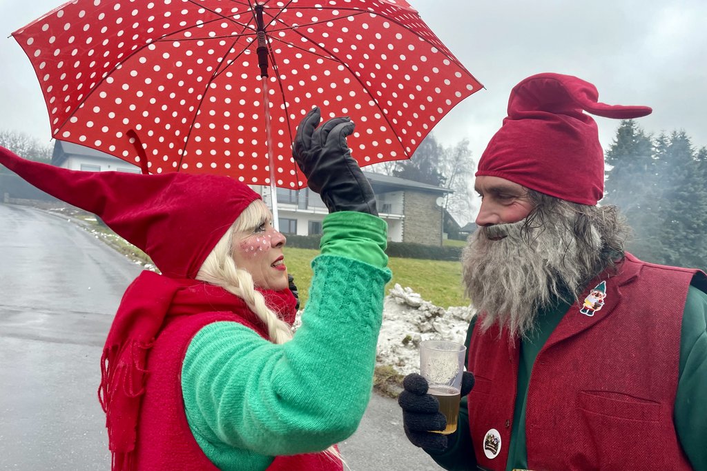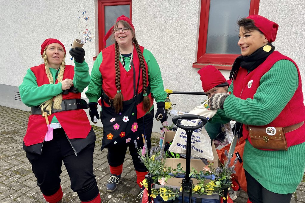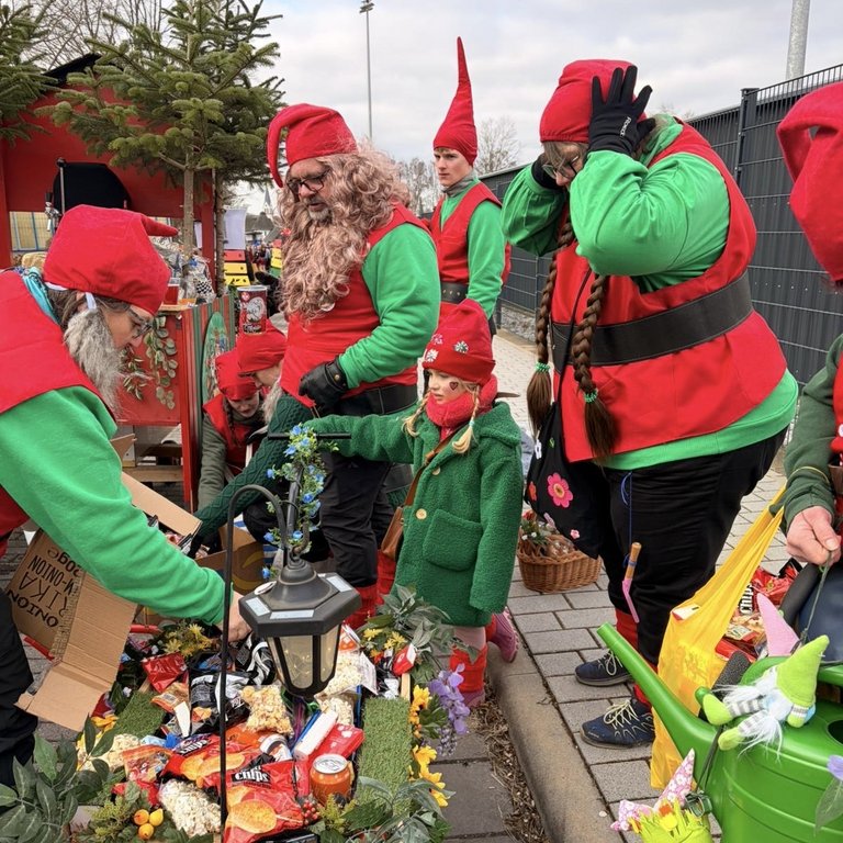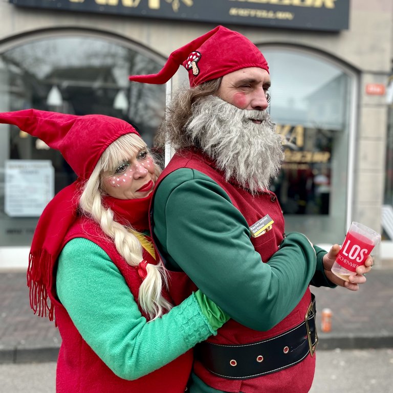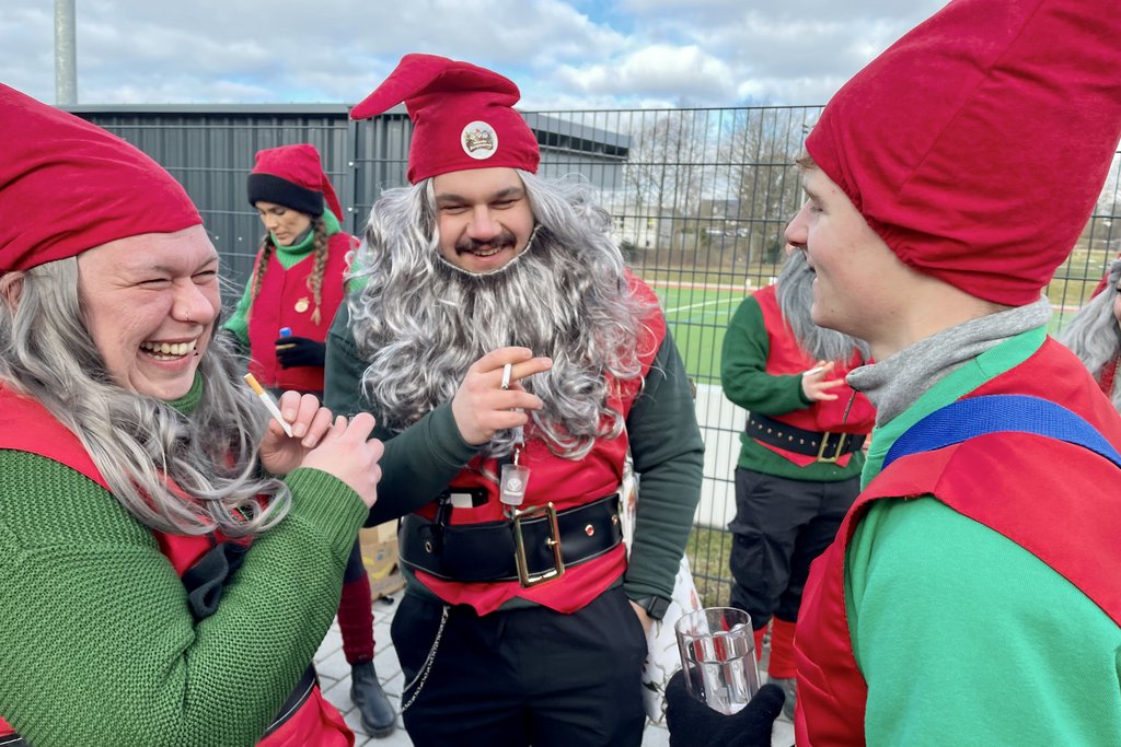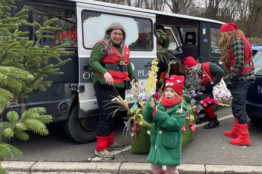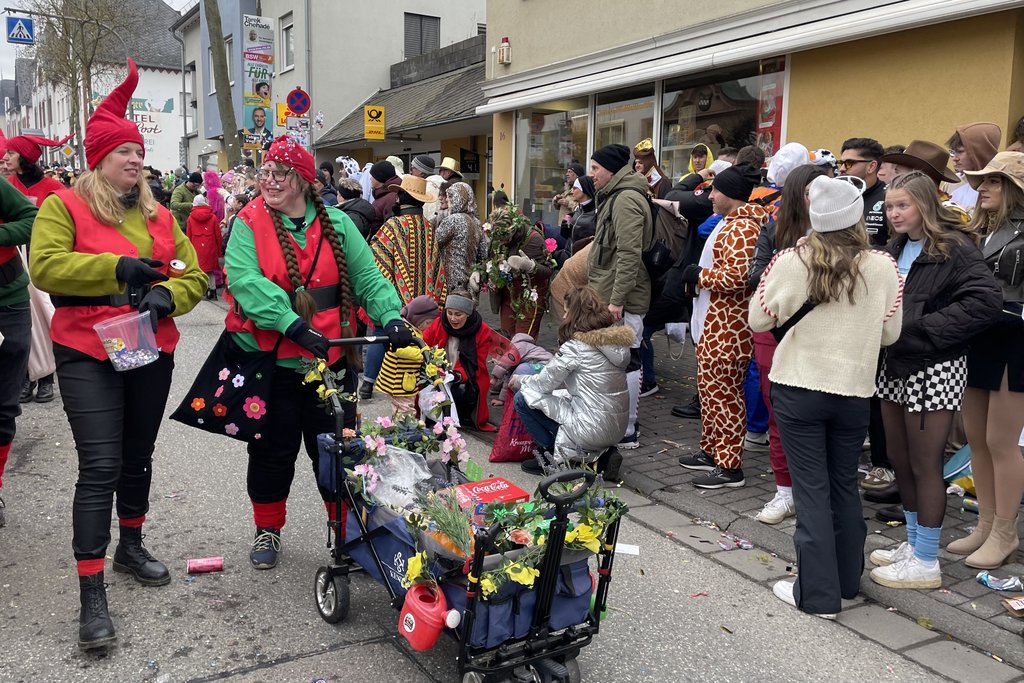 Der Woorder Zwergenaufstand zeigte sich aber von seiner freundlichen Seite. Aufstand ja, aber nett, freundlich und immer mit einem Helau auf den Lippen. Mehr als dreißig rote Zipfelmützen machten sich auf den Weg um die Narrenschar zu begrüßen. Mit reichlich Wurfmaterial und Flüssignahrung konnten die Zuschauer rechts und links der närrischen Wege beglückt werden.