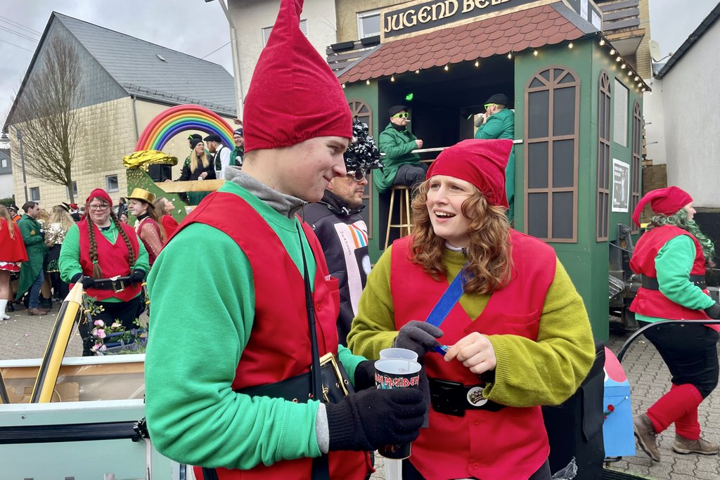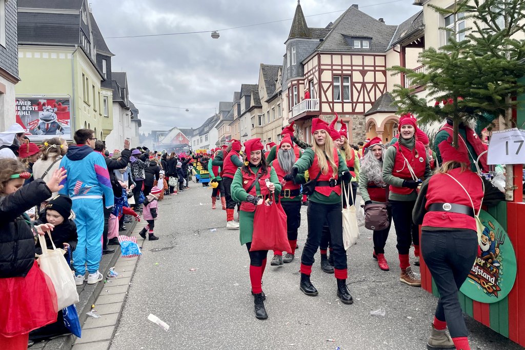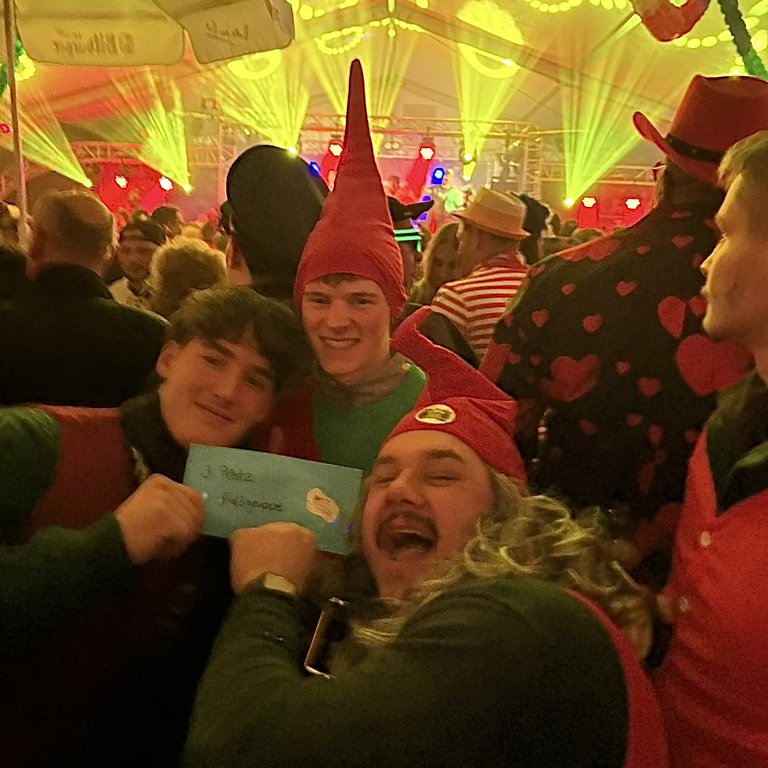 "Um 10:33 ging es in Leideneck los. Gut gerüstet wie wir waren, lief alles reibungslos. Am dortigen Gemeindehaus steppte schon der Bär, viele bekannte Gesichter und alle bei bester Laune. Schon toll was die Länicker so auf die Beine stellen. Noch schnell ein Kaltgetränk und ab nach Hause, die Pizzen warteten schon. Gut gestärkt und mit neuem Wurfmaterial bestückt, ging nun nach Kastellaun. Ab und zu kam auch die Sonne raus, Narrenwetter, Glück gehabt. Am Ziel bei der Allee angelangt hieß es erstmal verschnaufen, um sich dann im Narrenkäfig noch um die letzten Absacker zu kümmern. Die Freude des Abends war dann der 3. Platz im Wettbewerb um die besten Fußgruppen. Na denn, das hat sich wieder gelohnt.
